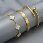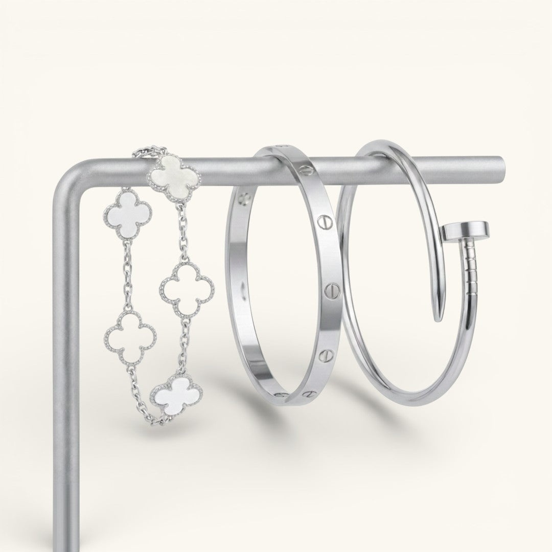 • Elegance Nail Bracelet: A bold and modern statement piece with a sleek nail-inspired design (one size).